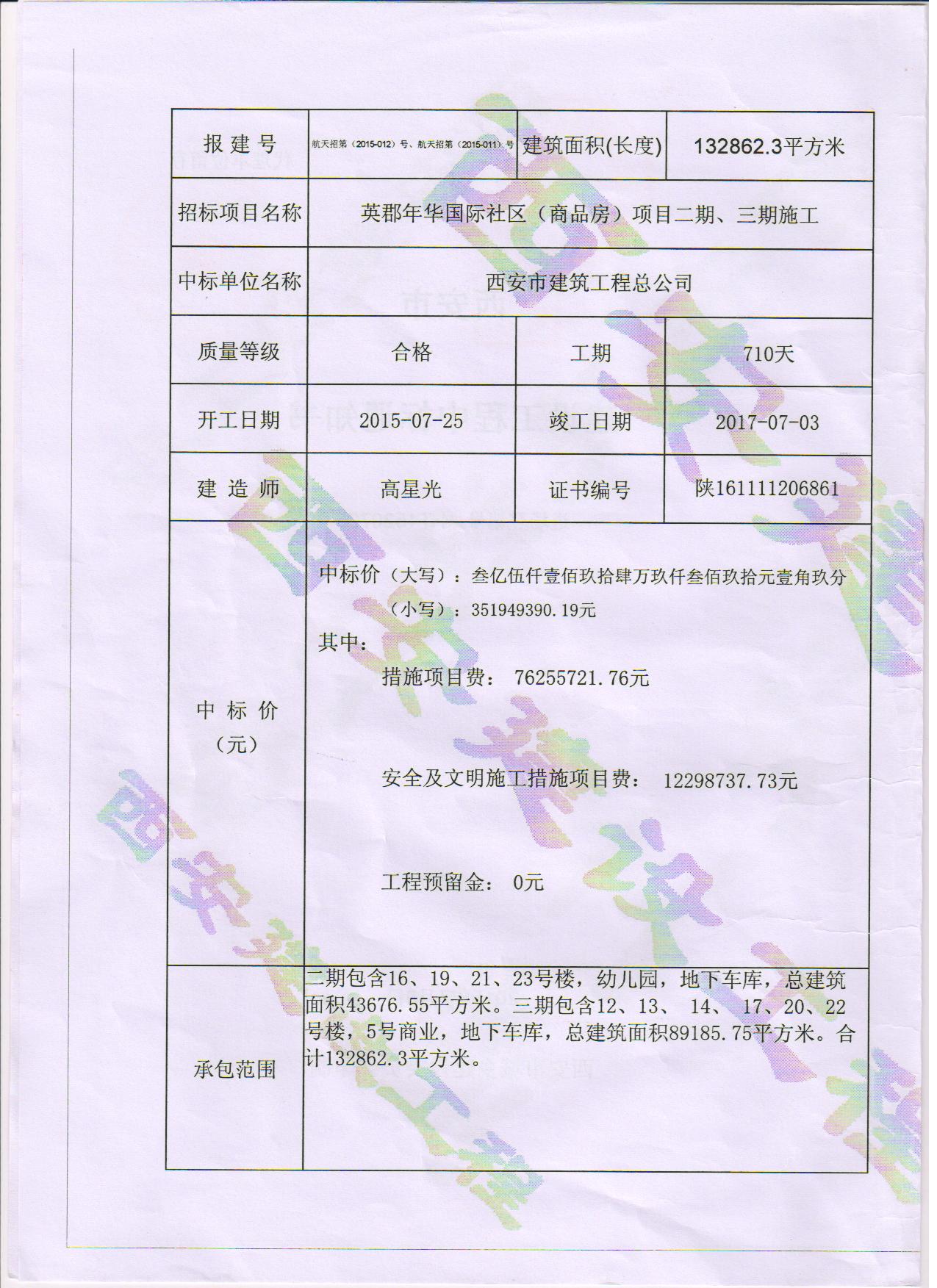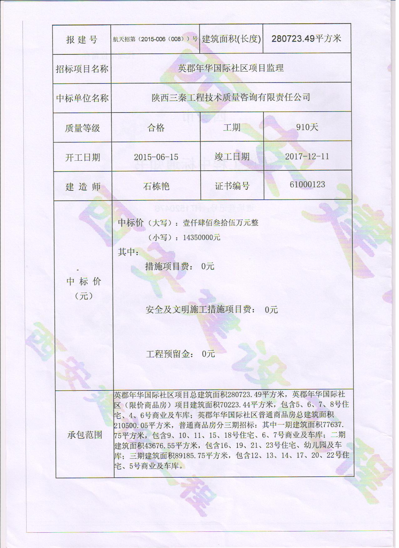 項(xiàng)目名稱:英郡年華國際社區(qū)(商品房)項(xiàng)目(一期、二期、三期)