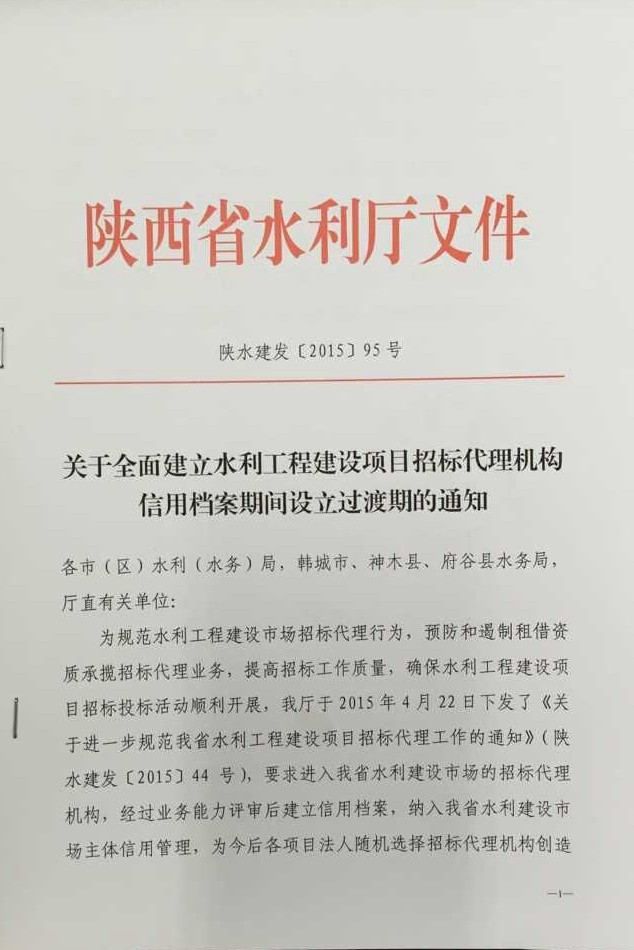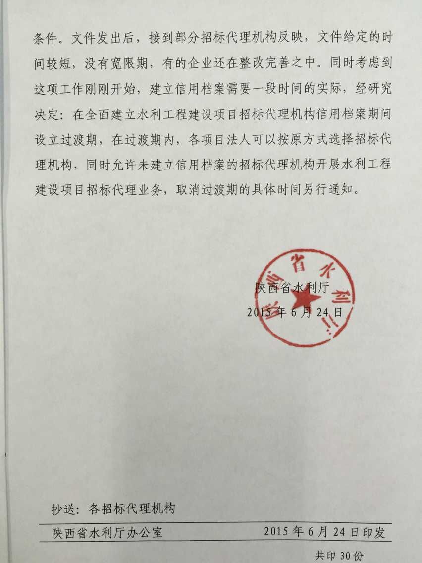 關(guān)于全面建立水利工程建設(shè)項(xiàng)目招標(biāo)代理機(jī)構(gòu)信用檔案期間設(shè)立過渡期的通知