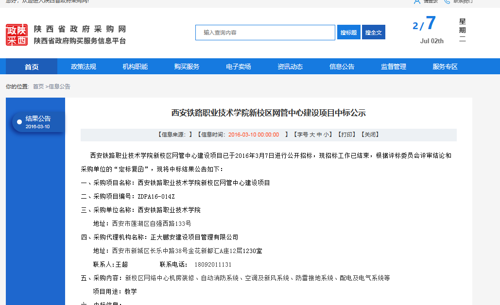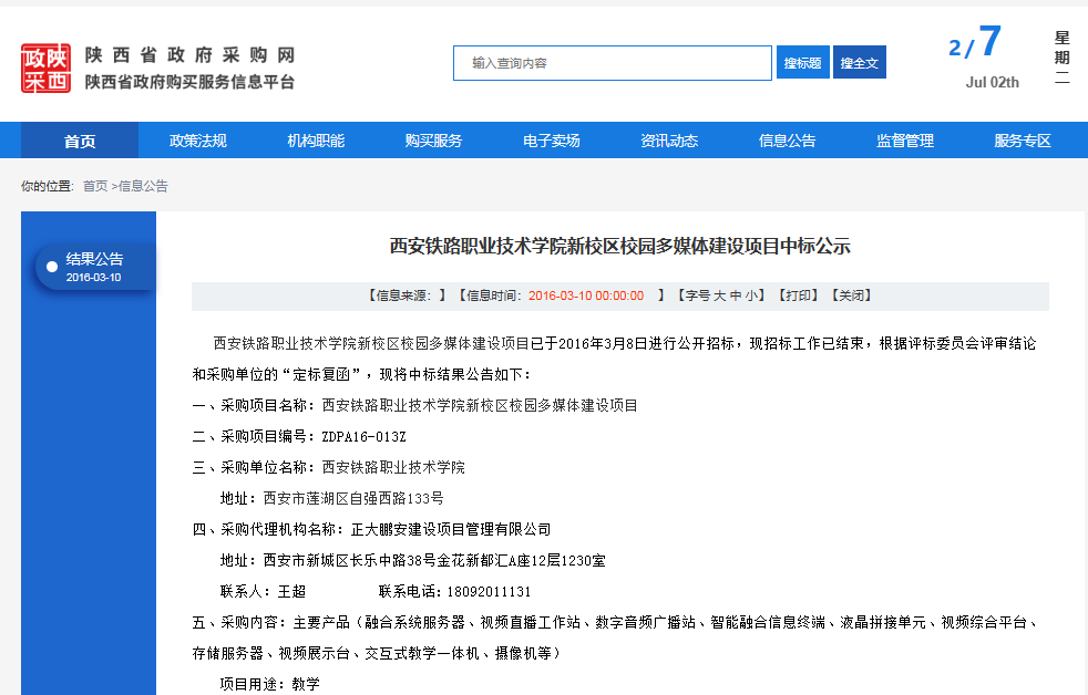 項目名稱:西安鐵路職業(yè)技術學院新校區(qū)2016年政府采購項目9項