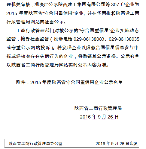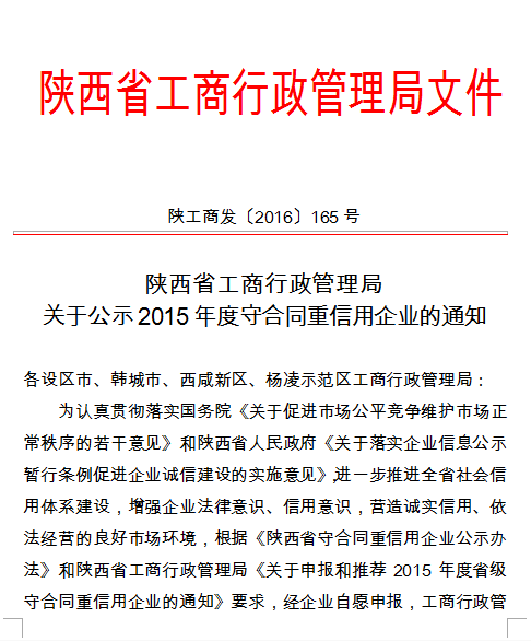 熱烈祝賀正大鵬安公司榮獲2015年度陜西省“守合同重信用”企業(yè)