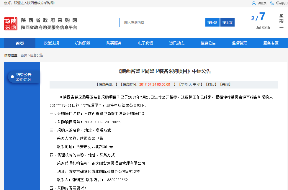 項(xiàng)目名稱:陜西省警衛(wèi)局警衛(wèi)裝備采購項(xiàng)目