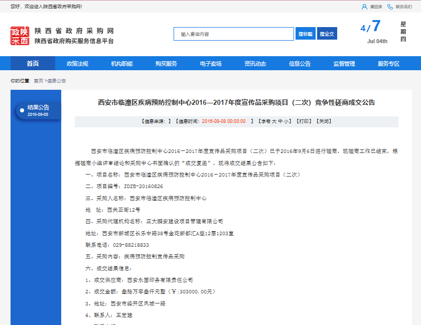西安市臨潼區(qū)疾病預(yù)防控制中心2016-2017年度宣傳品采購項目