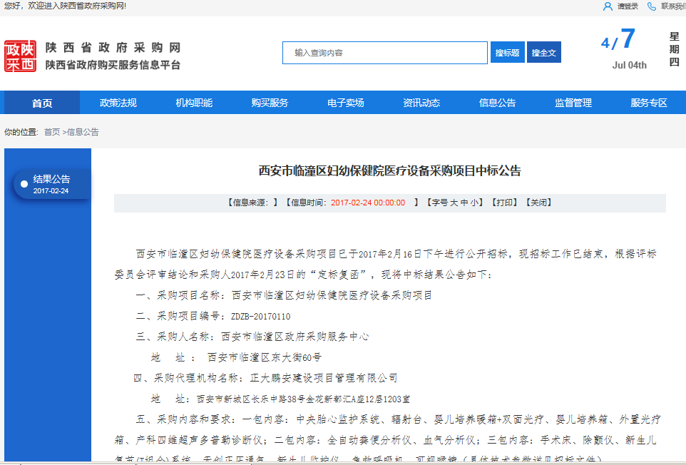 西安市臨潼區(qū)婦幼保健院醫(yī)療設(shè)備采購(gòu)項(xiàng)目