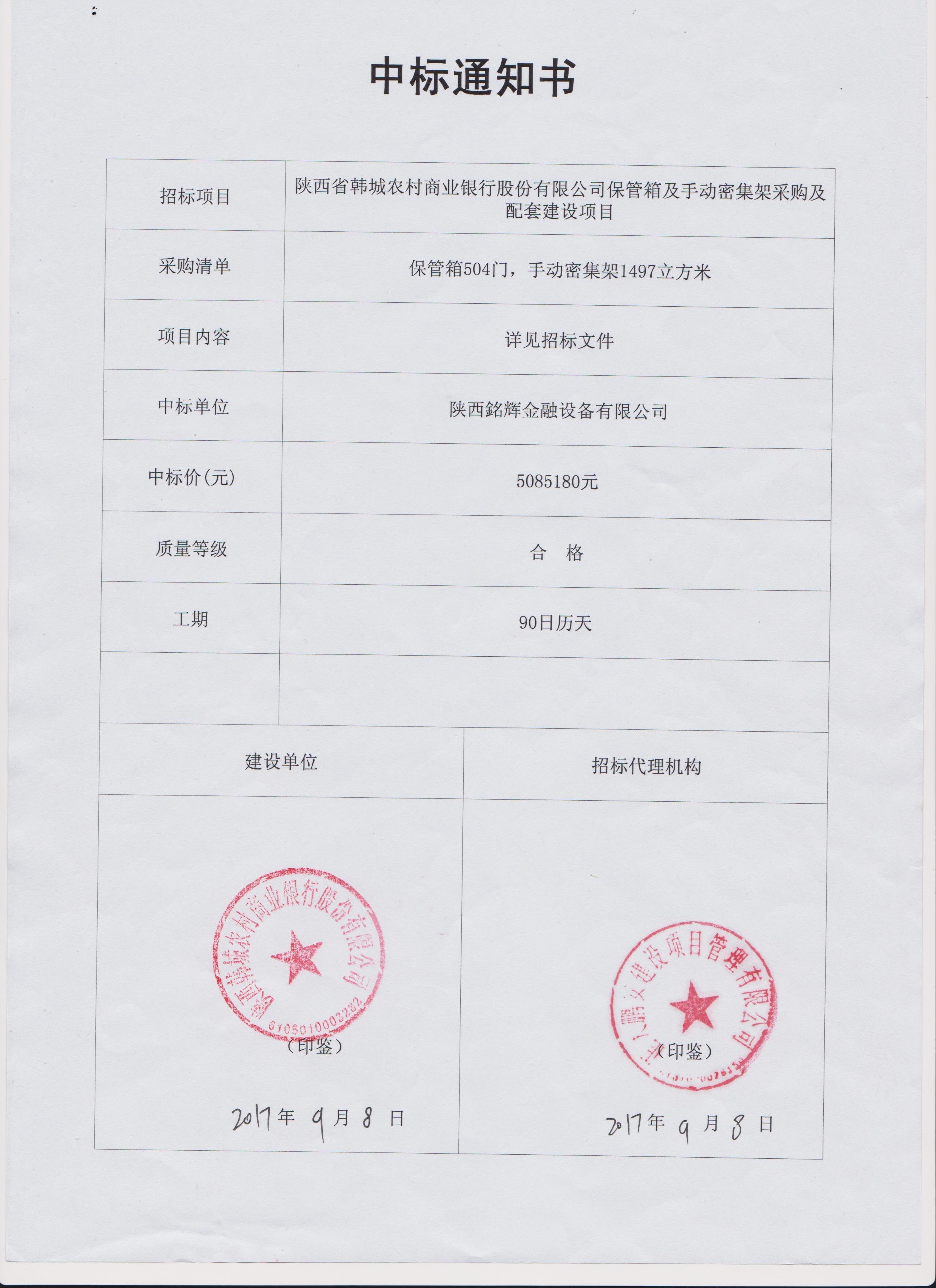 陜西韓城農(nóng)村商業(yè)銀行股份有限公司保管箱及手動(dòng)密集架采購(gòu)及配套建設(shè)項(xiàng)目