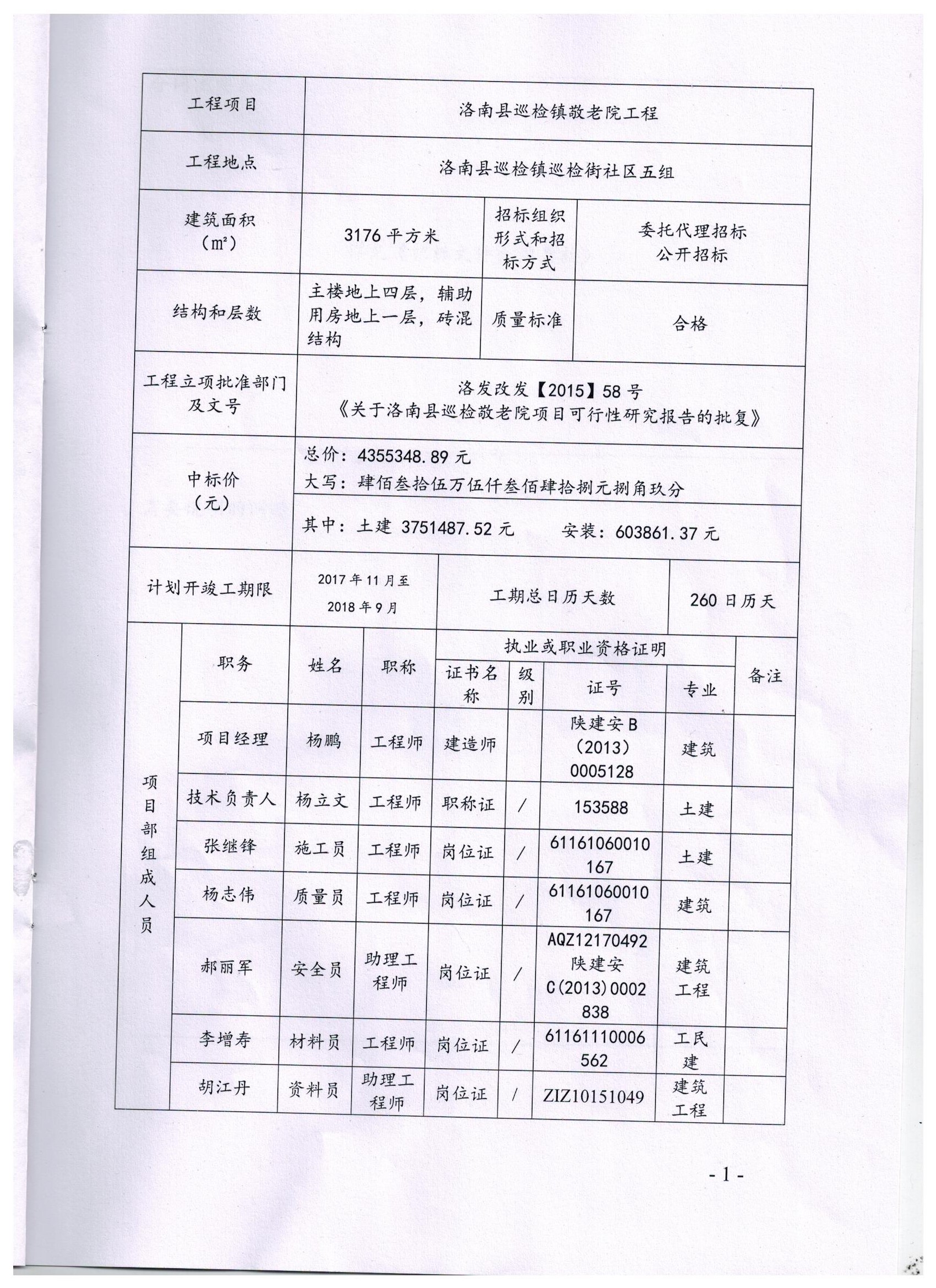 項(xiàng)目名稱:洛南縣巡檢鎮(zhèn)敬老院項(xiàng)目