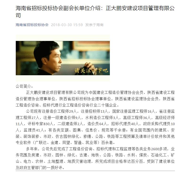海南省招標(biāo)投標(biāo)協(xié)會(huì)對(duì)正大鵬安建設(shè)項(xiàng)目管理有限公司進(jìn)行專題報(bào)道