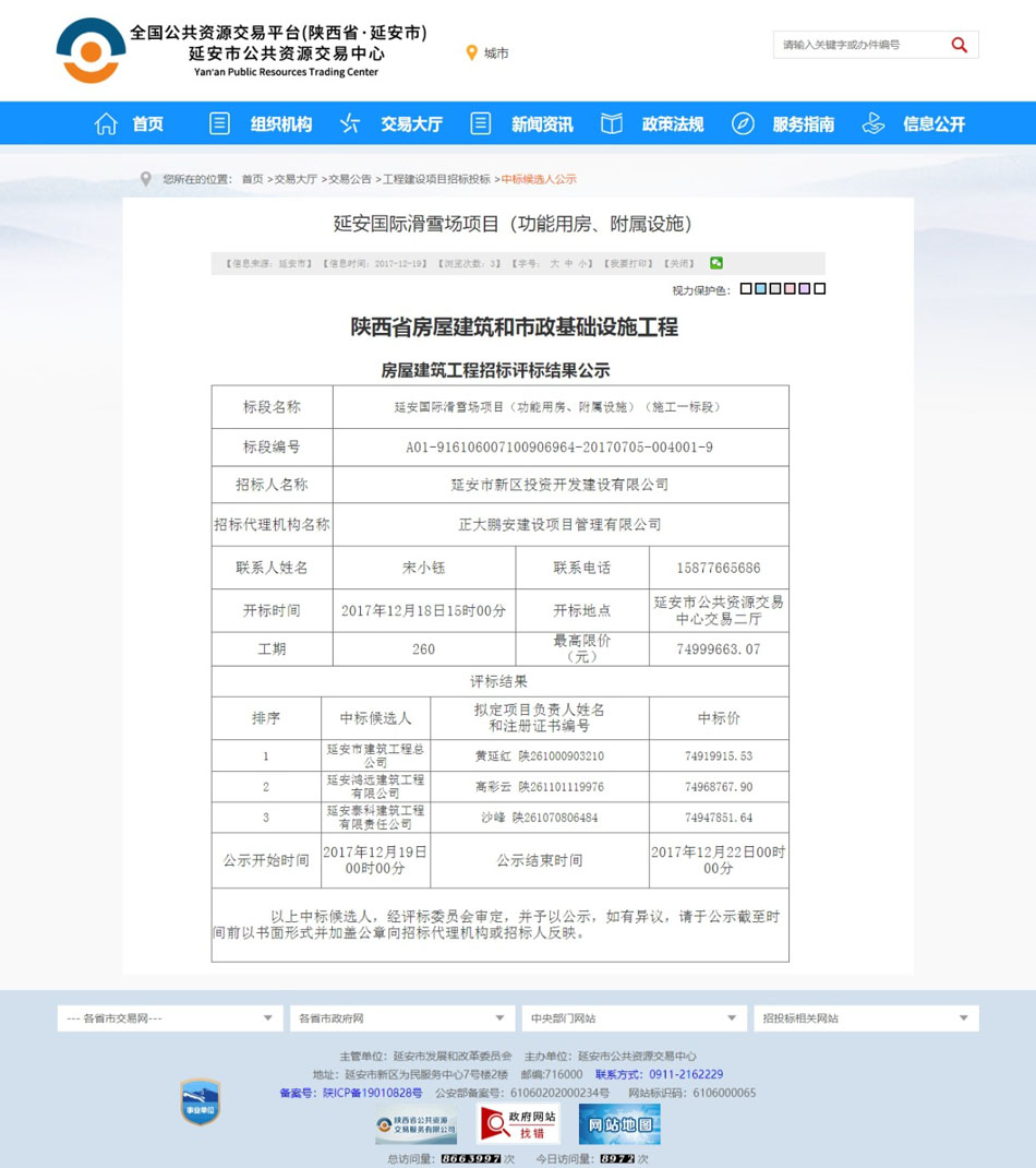 項目名稱:延安國際滑雪場項目(功能用房、附屬設施)