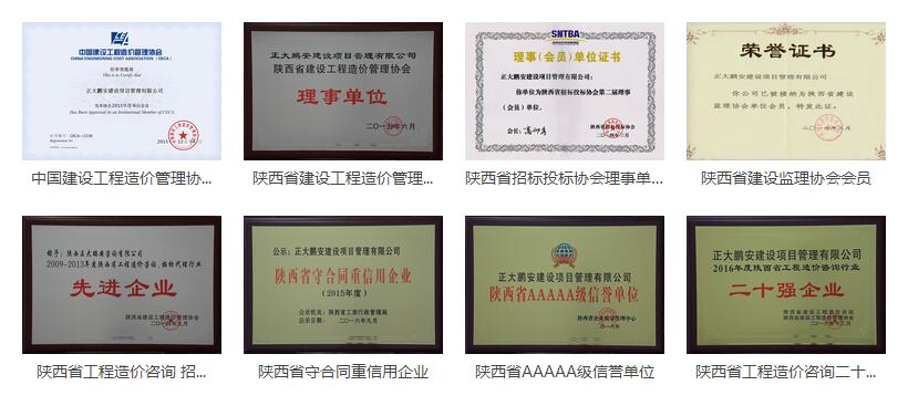 正大鵬安公司在行業(yè)地位不斷提升的同時(shí),市場占有率和社會認(rèn)可度也不斷提高。近年來,正大鵬安公司先后榮獲陜西省工程造價(jià)咨詢招標(biāo)代理行業(yè)先進(jìn)企業(yè)、陜西省守合同重信用企業(yè)、陜西省AAAAA級信譽(yù)單位、陜西省工程造價(jià)咨詢行業(yè)二十強(qiáng)企業(yè)、全國工程造價(jià)咨詢AAA級(最高級)信用企業(yè)等社會榮譽(yù),并榮獲ISO9001:2015質(zhì)量管理體系認(rèn)證、ISO14001:2015環(huán)境管理體系認(rèn)證和OHSAS18001:2007職業(yè)健康安全管理體系認(rèn)證。
