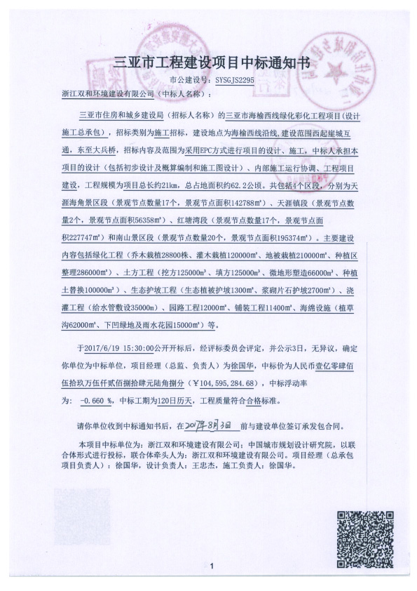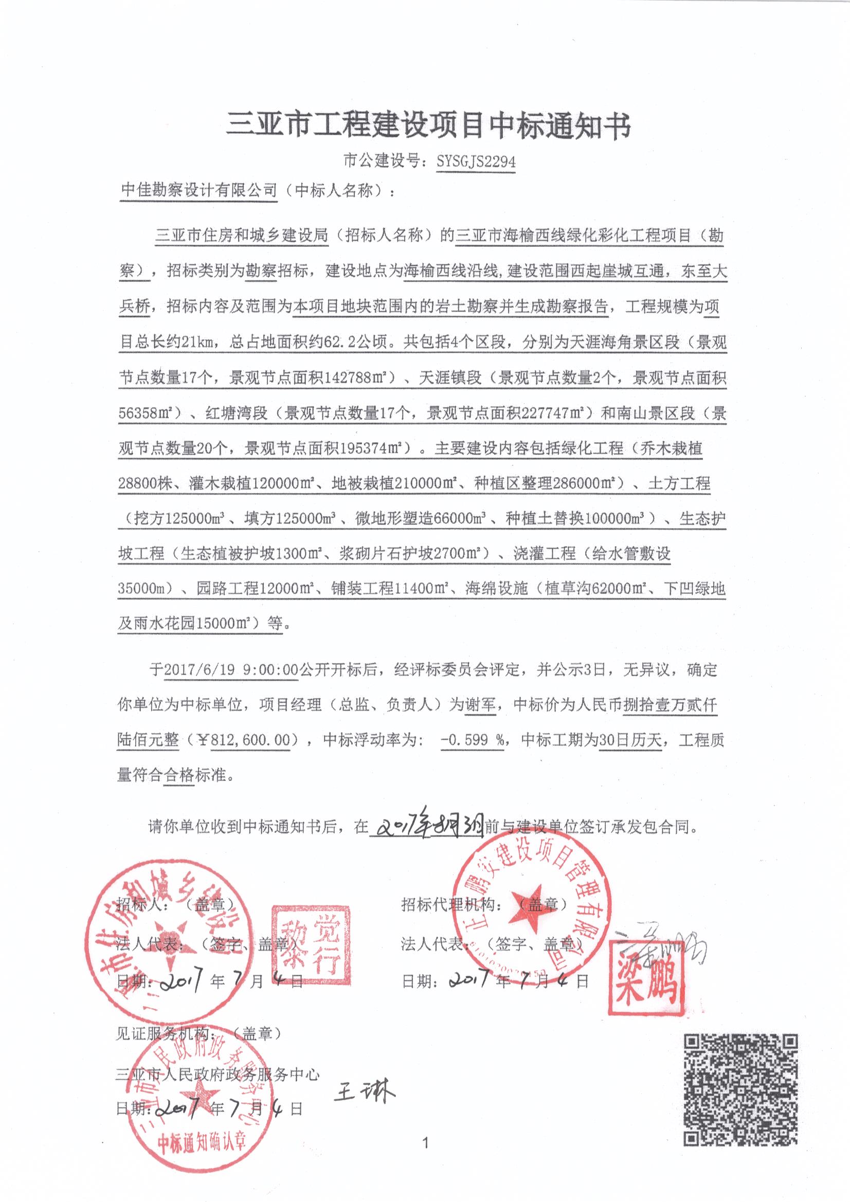 項(xiàng)目名稱:三亞市海榆西線綠化彩化工程項(xiàng)目(勘察、設(shè)計(jì)、施工)項(xiàng)目概況:海榆西線沿線,建設(shè)范圍西起崖城互通,東至大兵橋,項(xiàng)目估算總投資約為1.21億元。其中勘察費(fèi)約81.75萬元,設(shè)計(jì)費(fèi)約310.52萬元,建安工程費(fèi)約1.02億元。