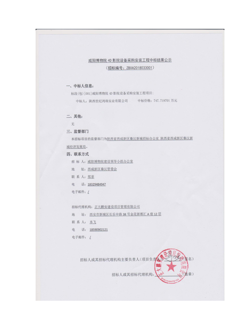 項(xiàng)目名稱:咸陽博物院4D影院設(shè)備采購安裝工程