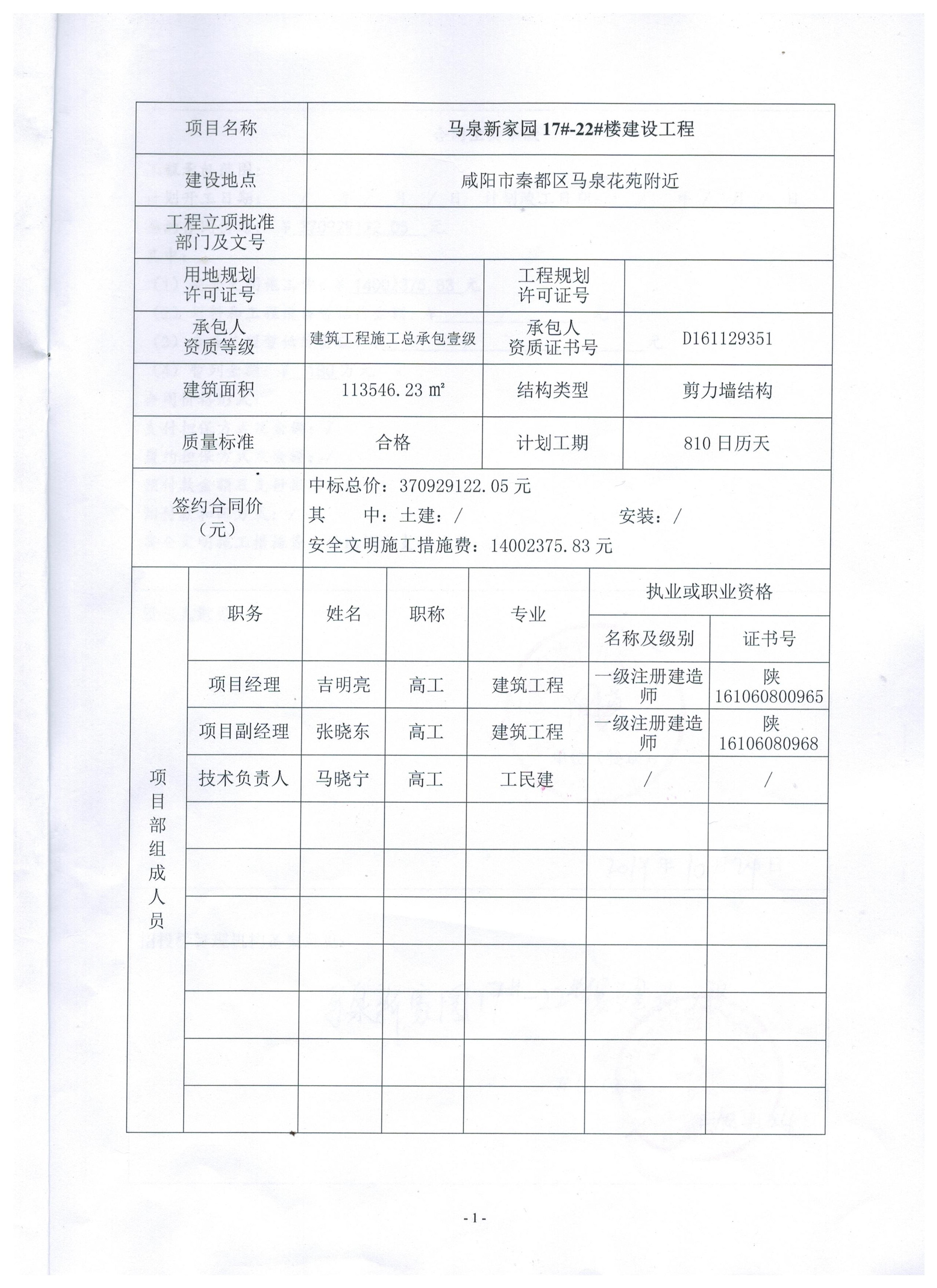 項(xiàng)目名稱:馬泉新家園17#-22#樓建設(shè)工程