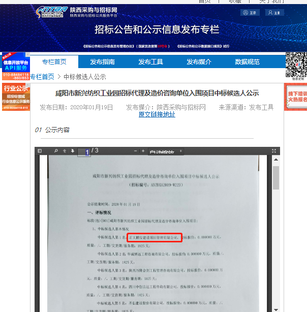 2020年1月,經(jīng)評標委員會評定,招標人確認,正大鵬安建設(shè)項目管理有限公司入圍咸陽市新興紡織工業(yè)園招標代理及造價咨詢單位項目。