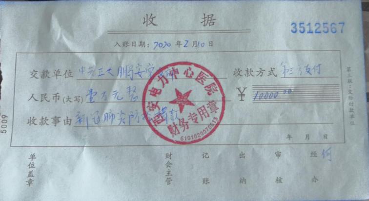 在這場沒有硝煙的戰(zhàn)役中,西安電力中心醫(yī)院全體醫(yī)護人員不計個人得失,不顧個人安危,不分晝夜,始終奮戰(zhàn)在抗擊新冠肺炎疫情的第一線。公司黨支部在了解到這個情況并征求了全體員工的意見后,于2月10日把在本次活動中收到的10000元善款捐贈給了西安電力中心醫(yī)院。