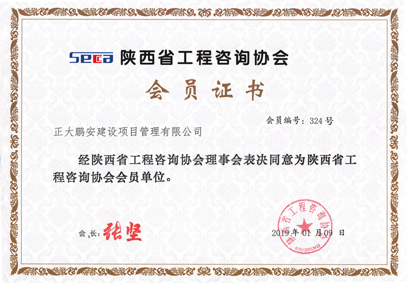 2019年年初,經陜西省工程咨詢協(xié)會理事會表決同意正大鵬安建設項目管理有限公司為陜西省工程咨詢協(xié)會會員單位。