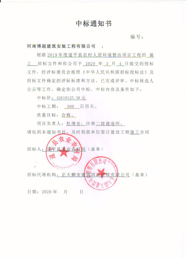 項(xiàng)目名稱:2019年度遂平縣農(nóng)村人居環(huán)境整治項(xiàng)目工程;