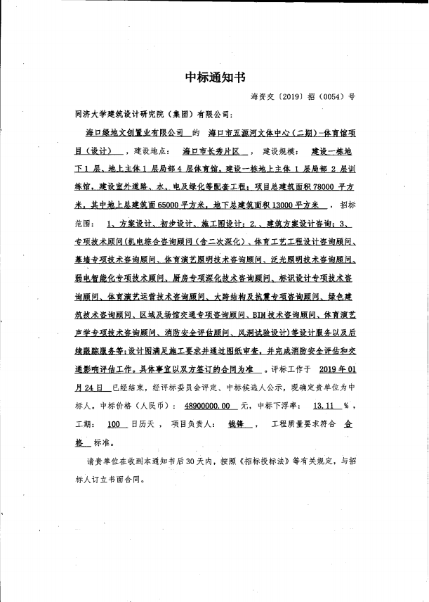 海口市五源河文體中心(二期)-體育館項(xiàng)目(勘察)(設(shè)計(jì))(施工)