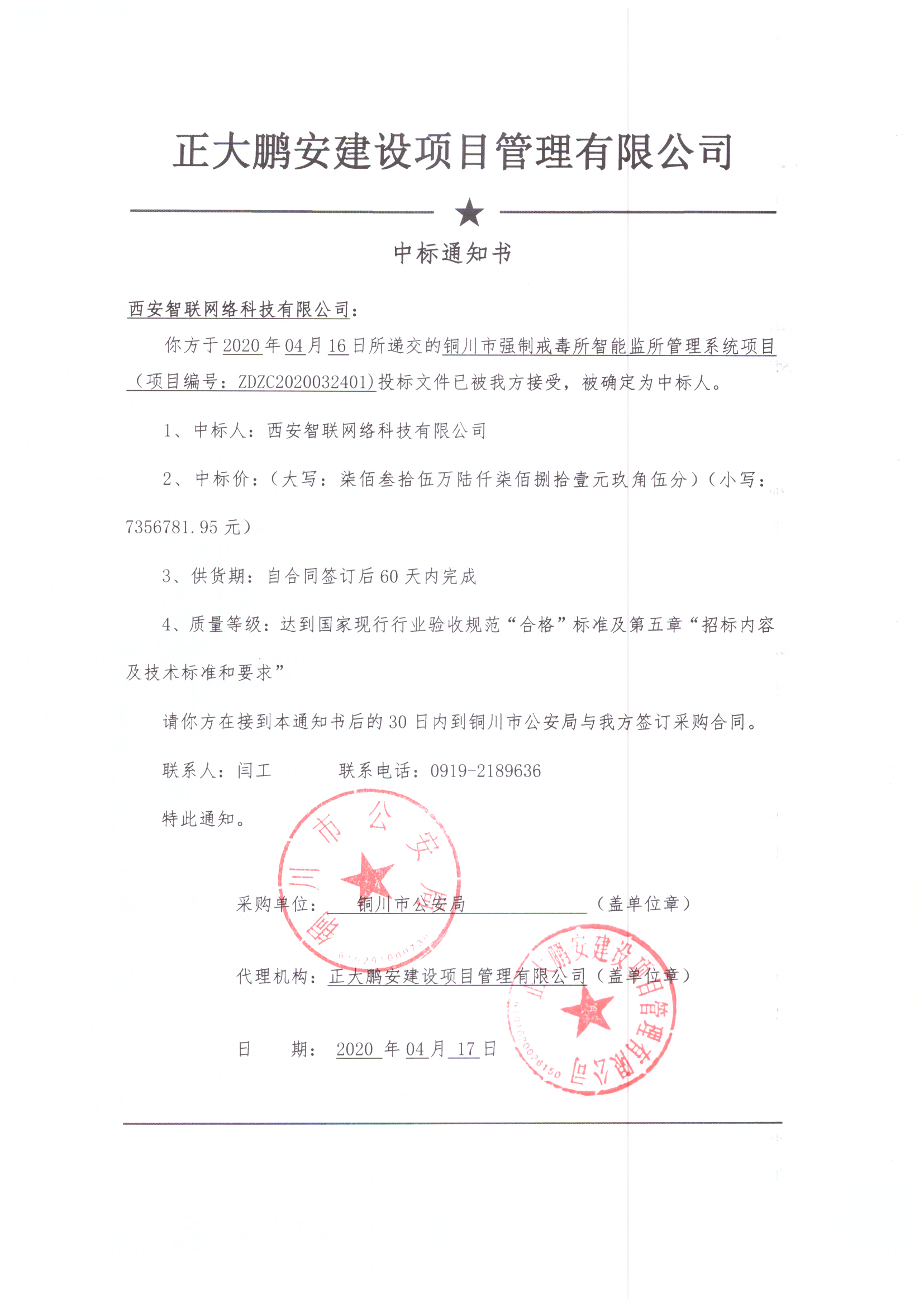項目名稱:銅川市強制戒毒所智能監(jiān)所管理系統(tǒng)建設項目