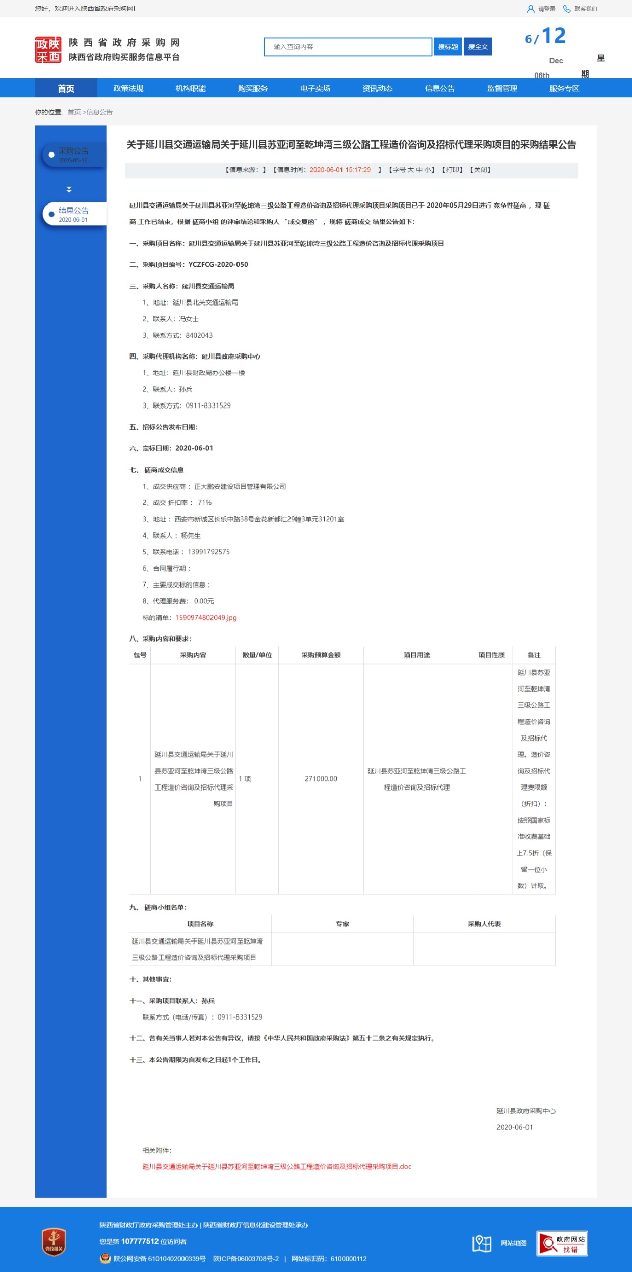 2020年5月29日,經(jīng)評標(biāo)委員會綜合評審,招標(biāo)人確認(rèn),正大鵬安建設(shè)項(xiàng)目管理有限公司中標(biāo)延川縣交通運(yùn)輸局關(guān)于延川縣蘇亞河至乾坤灣三級公路工程造價(jià)咨詢及招標(biāo)代理采購項(xiàng)目。