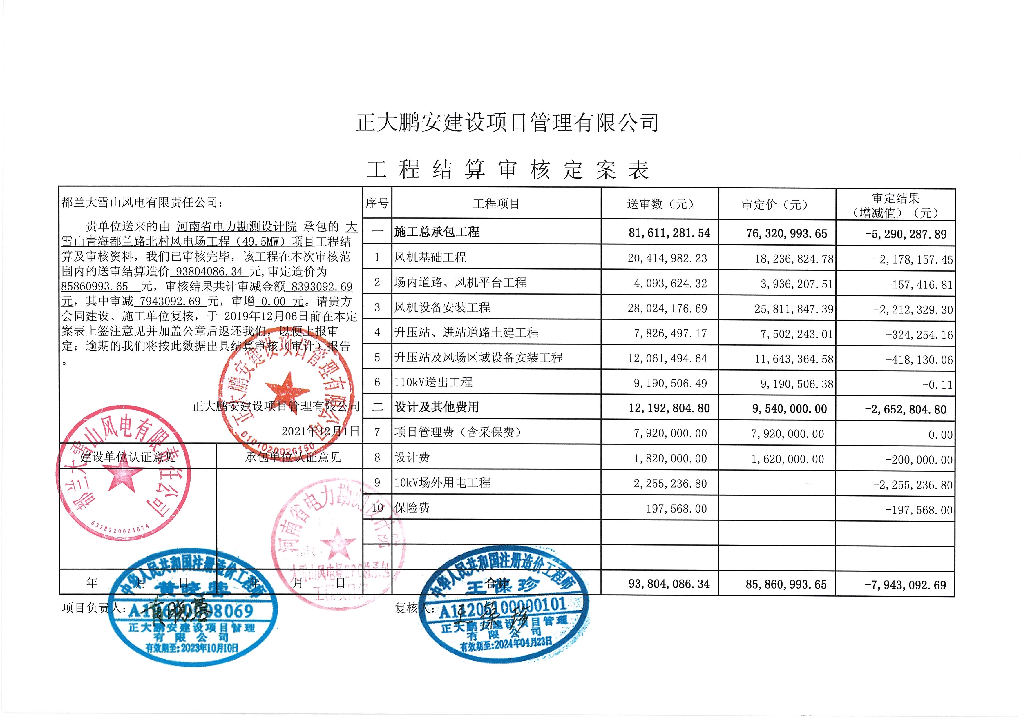工程規(guī)模:33*1500KW風力發(fā)電機組,建設地點:青海都蘭縣境內(nèi),海拔高度為2845~2950m,報送建設項目竣工結(jié)算審核。