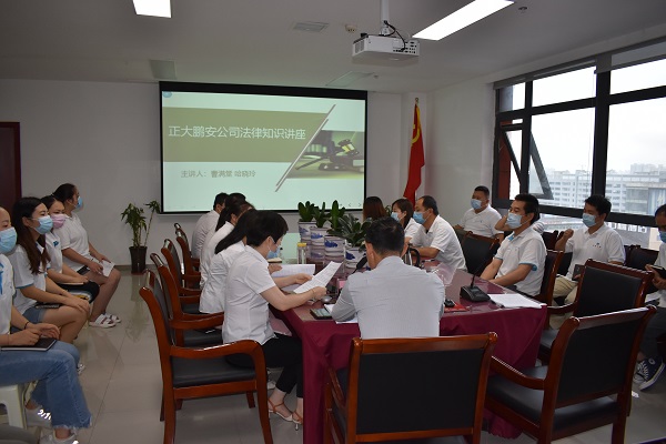 7月17日上午8:20——11:40在正大鵬安公司本部多功能廳進行“法律知識講座”培訓。