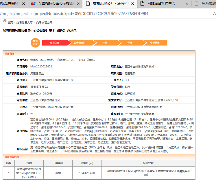 項目概況::項目總占地60500㎡(90.75畝),由2大部分組成:健身中心(19.22畝)和健身公園(71.53畝)。建設(shè)內(nèi)容:土建工程、裝修工程、給排水工程、電氣工程、弱電工程、消防工程、暖通工程、室外配套工程等。招標(biāo)控制價1.04億元。項目名稱:深??萍汲鞘忻窠∩碇行捻椖吭O(shè)計施工(EPC)總承包