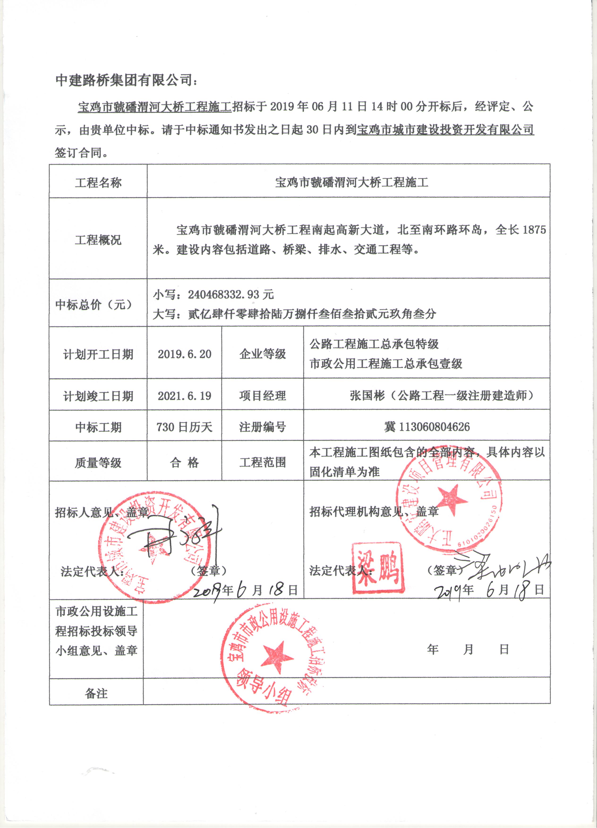 項(xiàng)目名稱:寶雞市虢磻渭河大橋工程