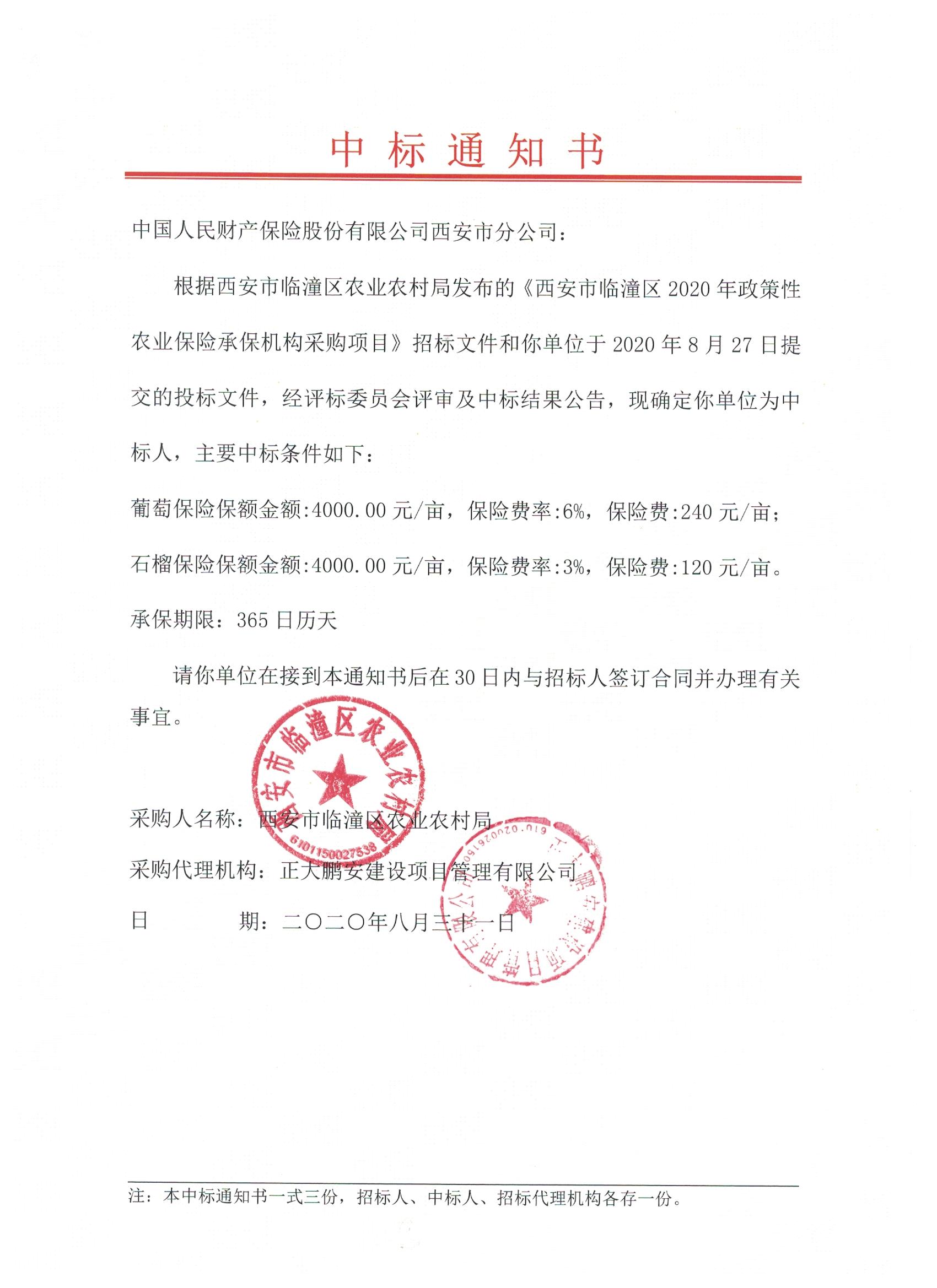 西安市臨潼區(qū)2020年政策性農(nóng)業(yè)保險(xiǎn)承保機(jī)構(gòu)采購(gòu)項(xiàng)目