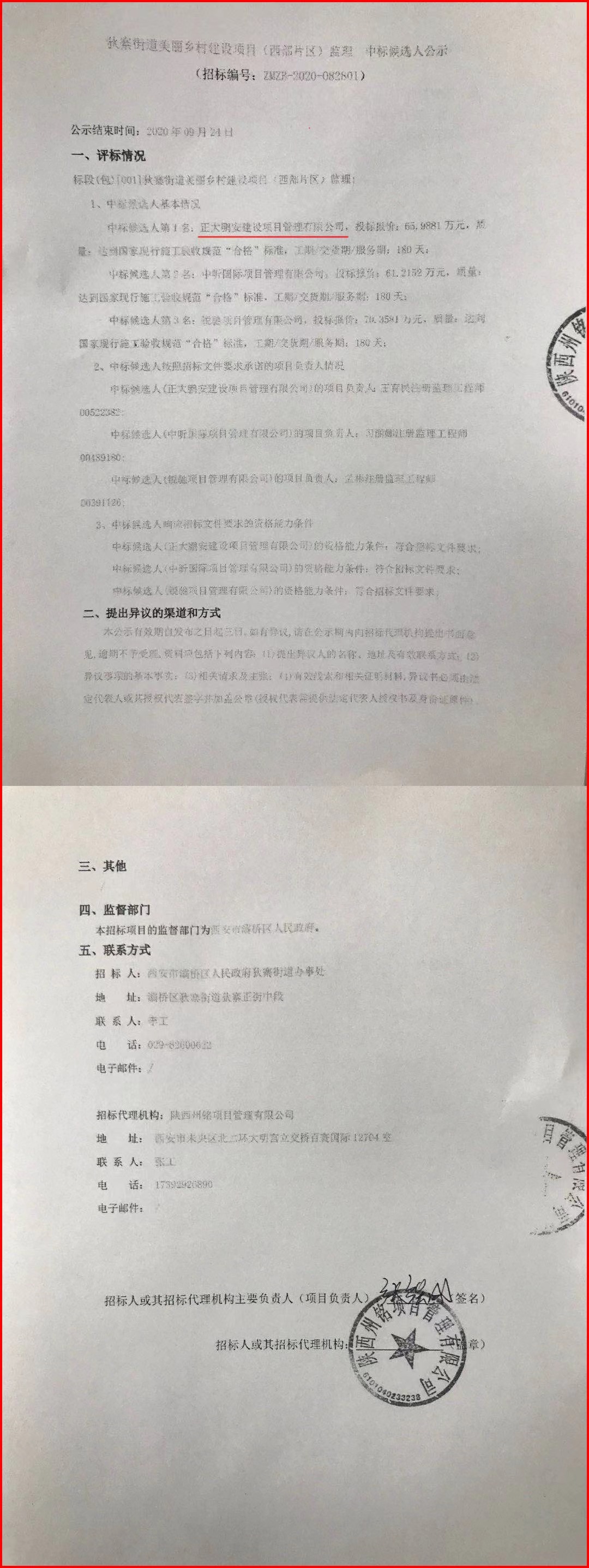 2020年9月,經(jīng)評(píng)標(biāo)委員會(huì)評(píng)定,招標(biāo)人確認(rèn),正大鵬安建設(shè)項(xiàng)目管理有限公司中標(biāo)西安市灞橋區(qū)人民政府狄寨街道辦事處的“西安市狄寨街道美麗鄉(xiāng)村建設(shè)項(xiàng)目(西部片區(qū))監(jiān)理”項(xiàng)目。