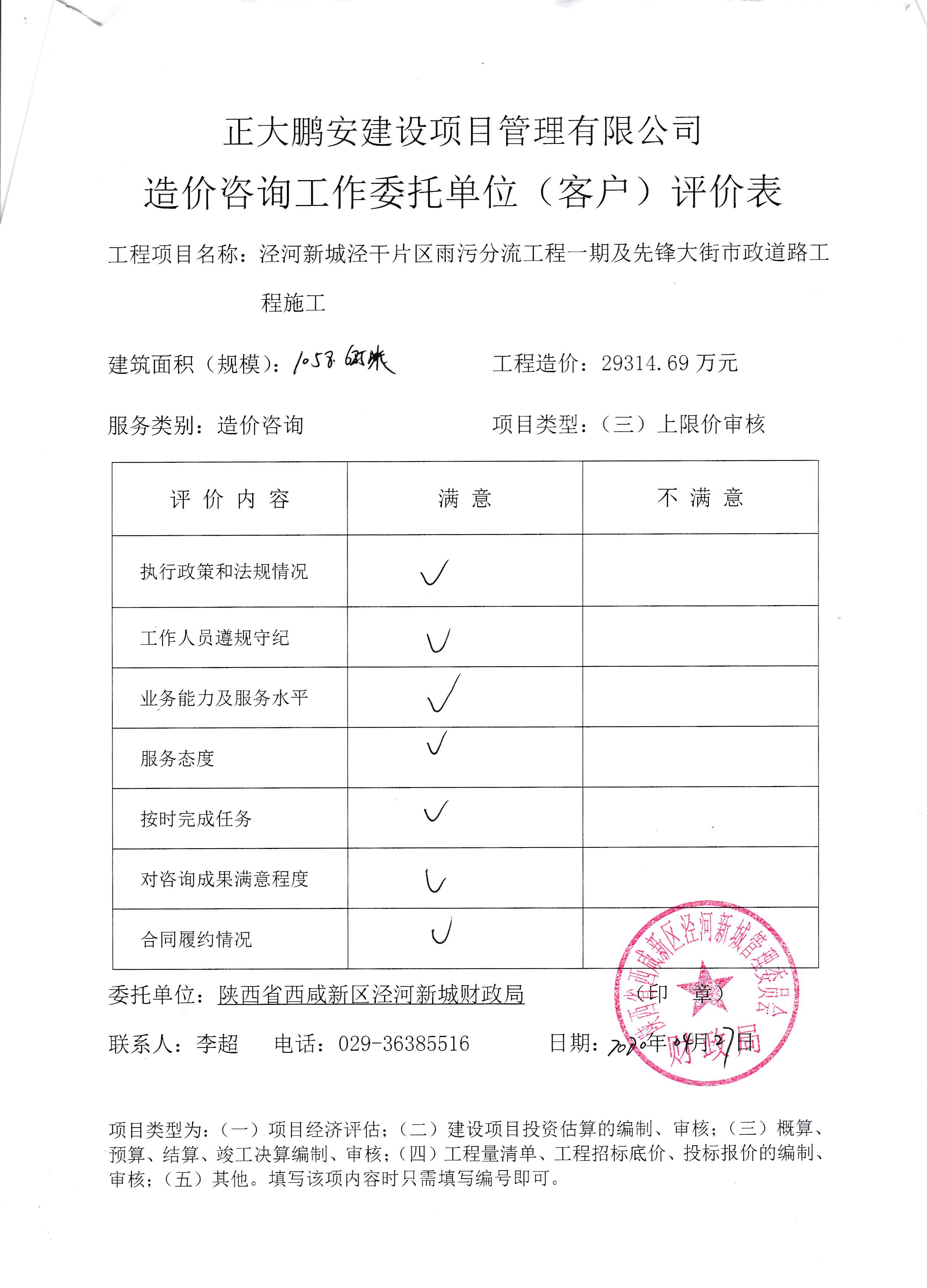 工程名稱(chēng):涇河新城涇干片區(qū)雨污分流及先鋒大街市政道路工程施工限價(jià)審核