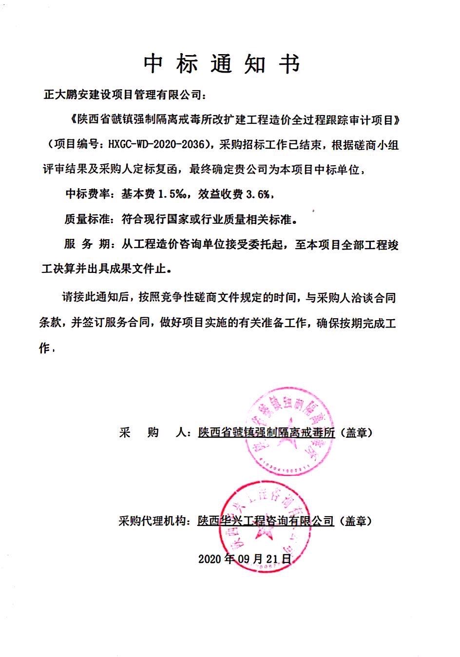 陜西省虢鎮(zhèn)強制隔離戒毒所改擴建工程造價全過程跟蹤審計項目