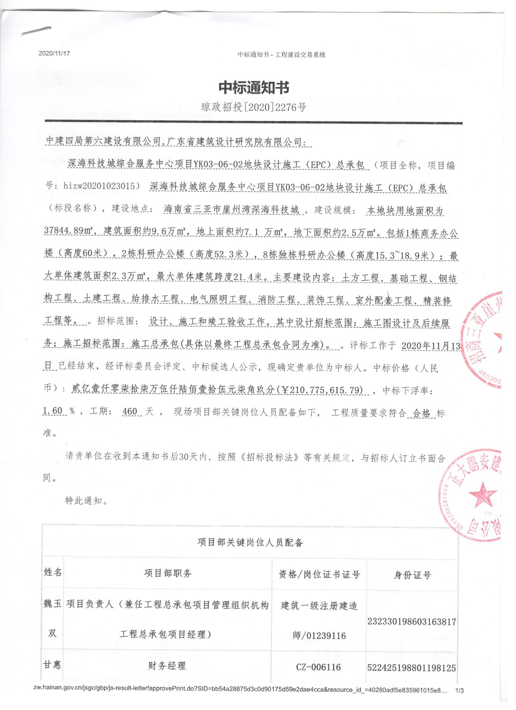 項(xiàng)目名稱:深海科技城綜合服務(wù)中心項(xiàng)目YK03-06-02地塊設(shè)計(jì)施工(EPC)總承包