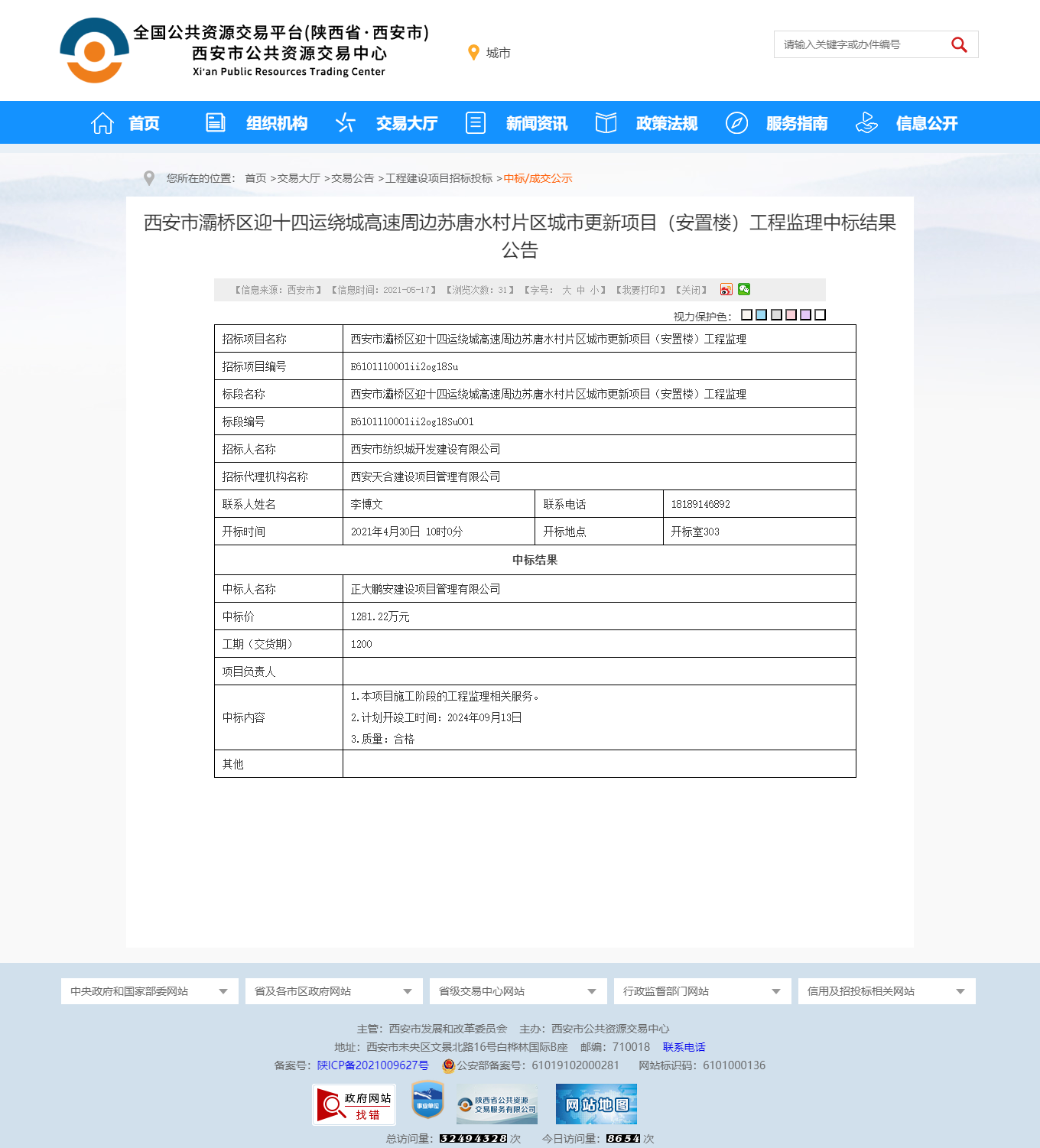 2021年4月,經(jīng)評(píng)標(biāo)委員會(huì)評(píng)定,招標(biāo)人確認(rèn),正大鵬安建設(shè)項(xiàng)目管理有限公司中標(biāo)西安市灞橋區(qū)迎十四運(yùn)繞城高速周邊蘇唐水村片區(qū)城市更新項(xiàng)目(安置樓)工程監(jiān)理項(xiàng)目。