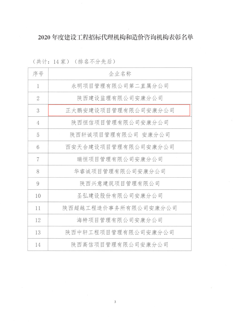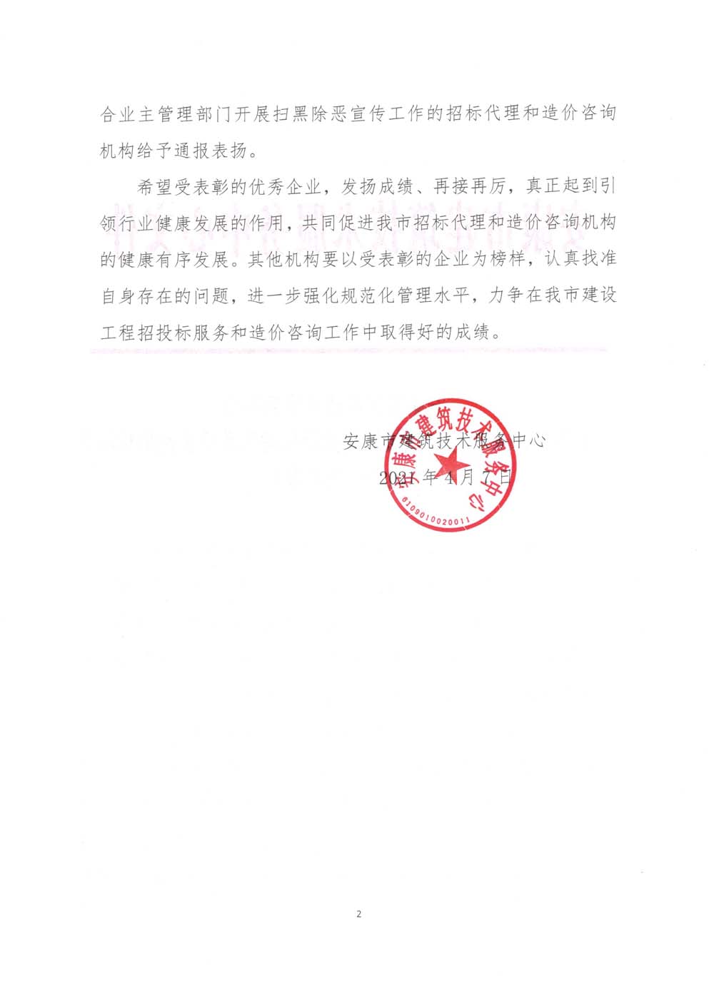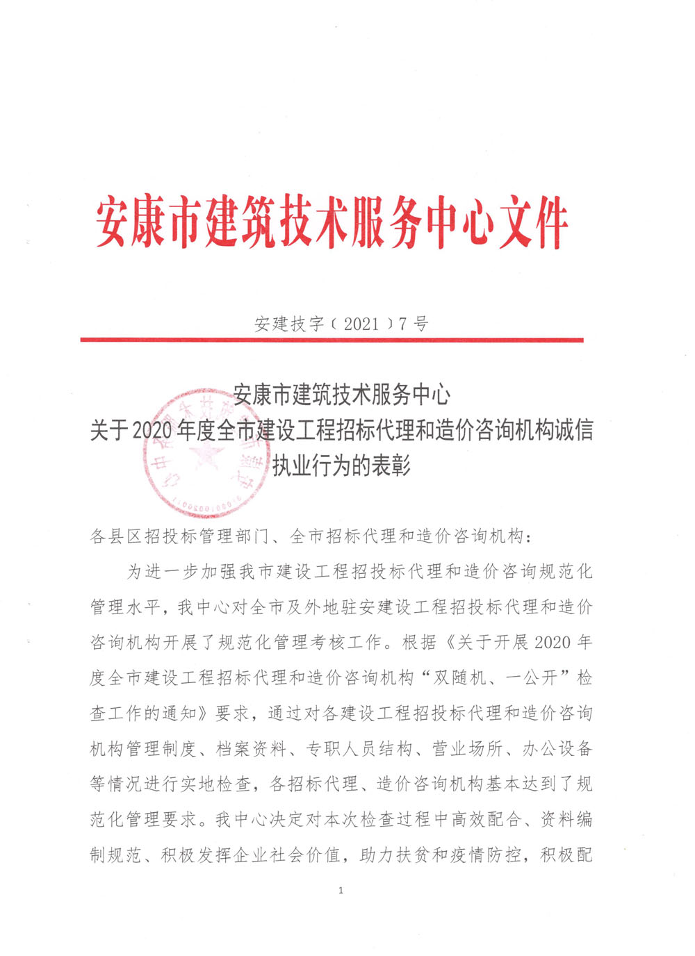 熱烈祝賀正大鵬安安康分公司在2020年度全市建設(shè)工程招標(biāo)代理和造價(jià)咨詢機(jī)構(gòu)誠信執(zhí)業(yè)行為考核中獲得表彰