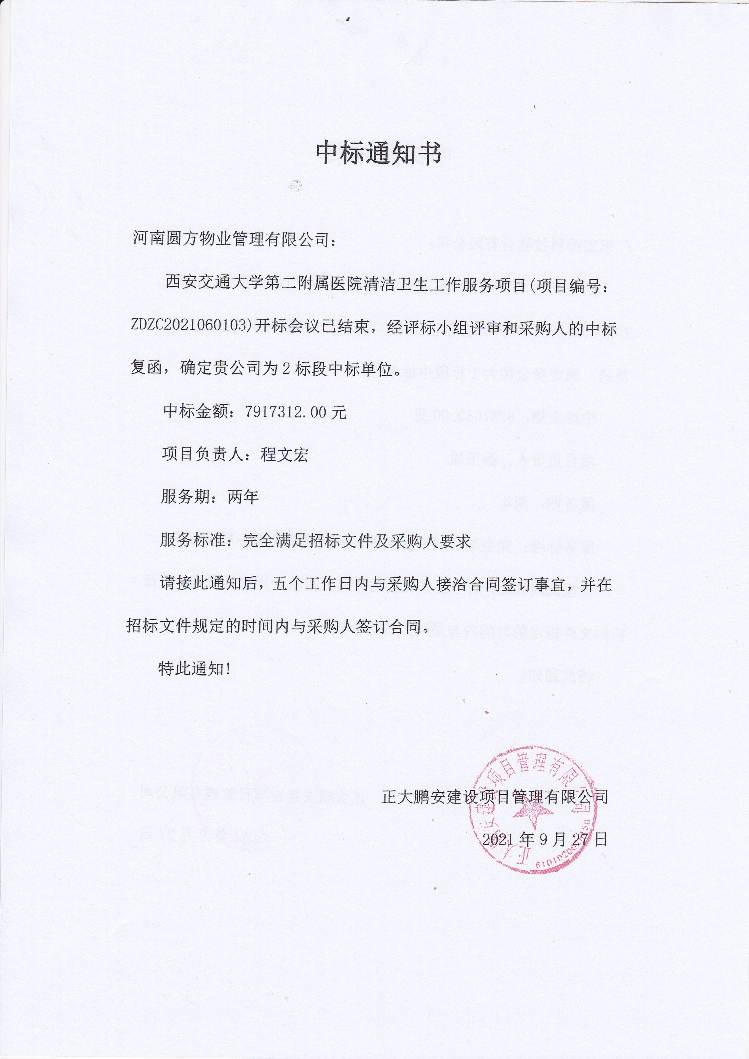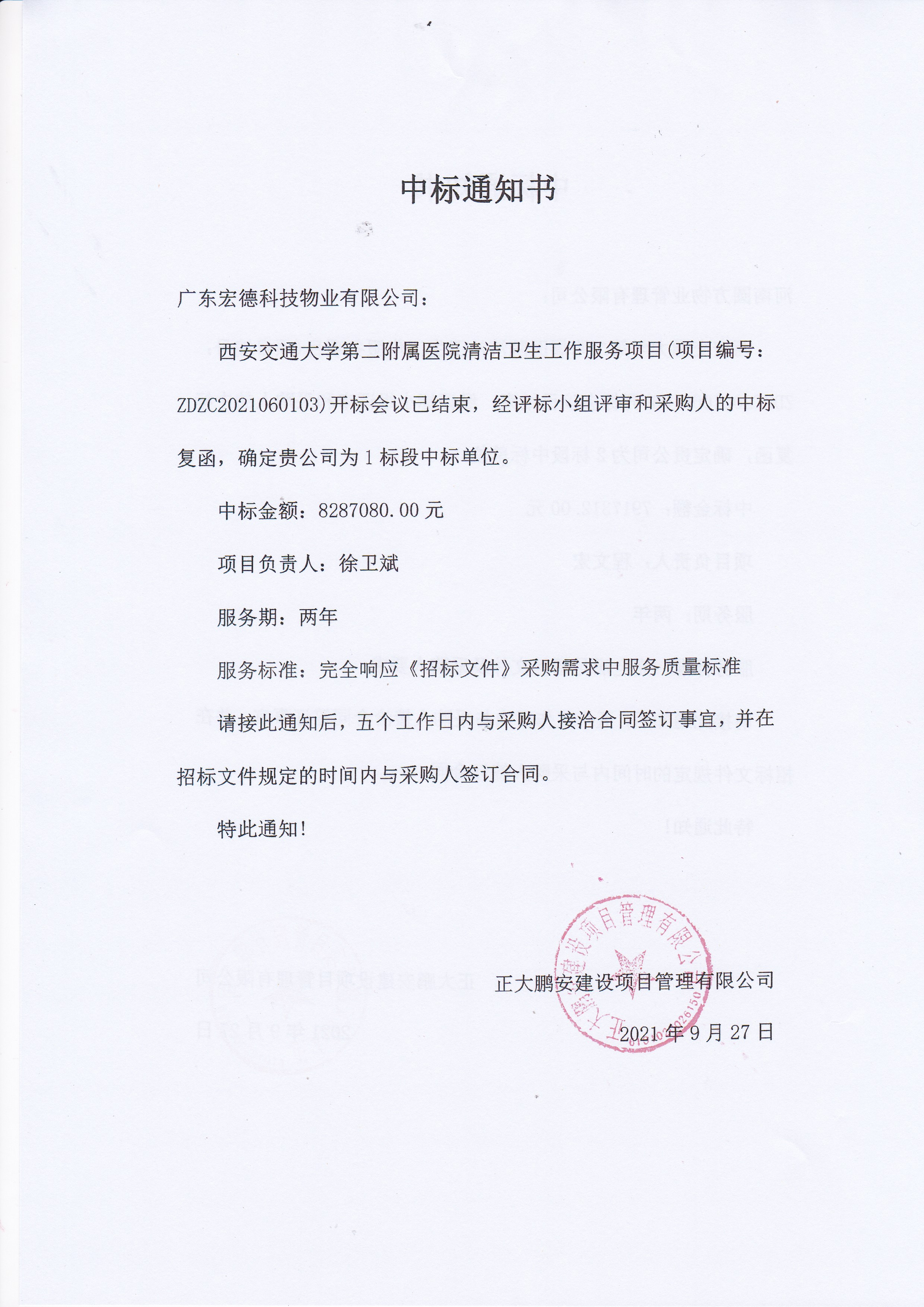 項(xiàng)目名稱:西安交通大學(xué)第二附屬醫(yī)院清潔衛(wèi)生工作服務(wù)項(xiàng)目