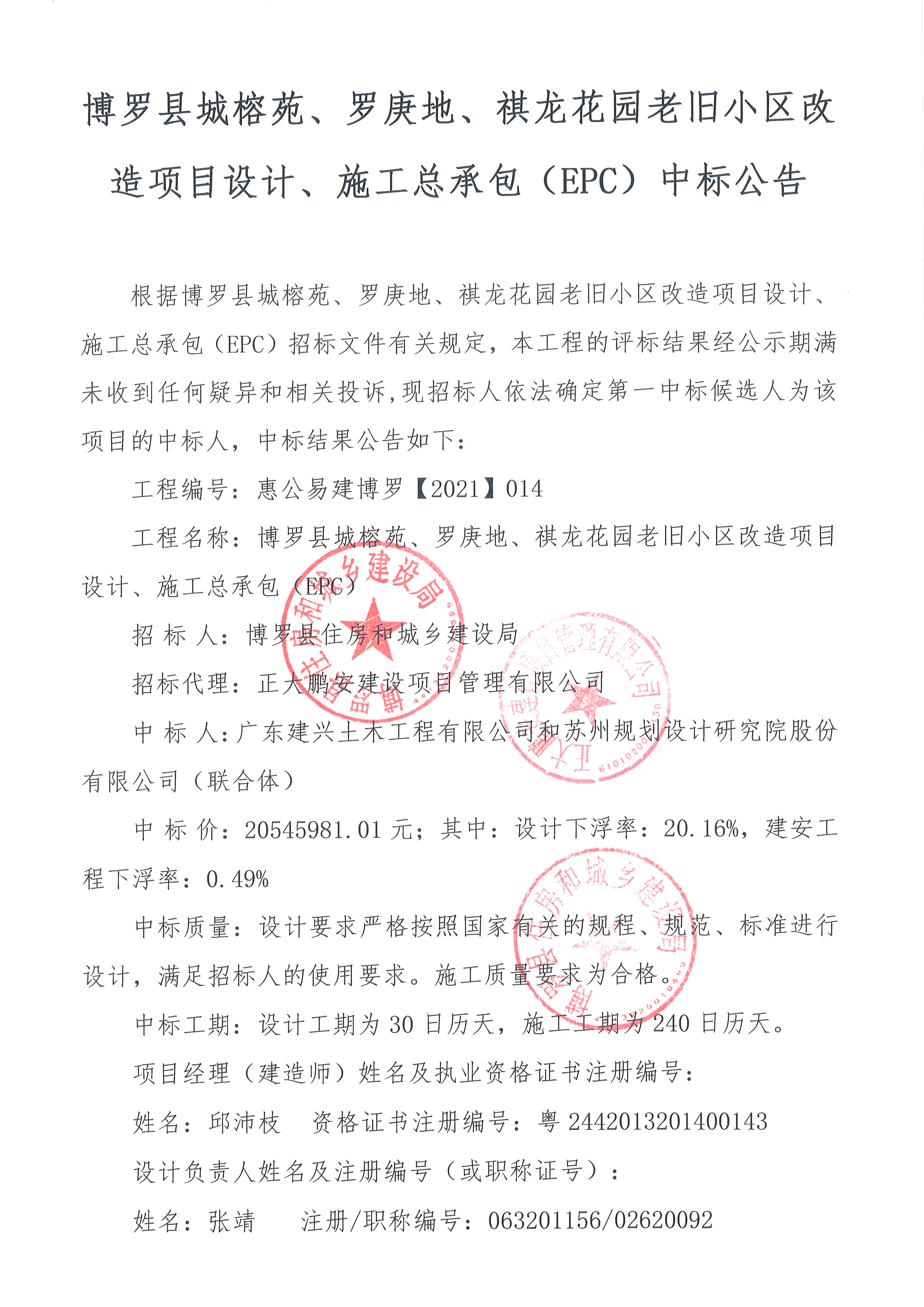 博羅縣城榕苑、羅庚地、祺龍花園老舊小區(qū)改造項(xiàng)目設(shè)計(jì)、 施工總承包(EPC)