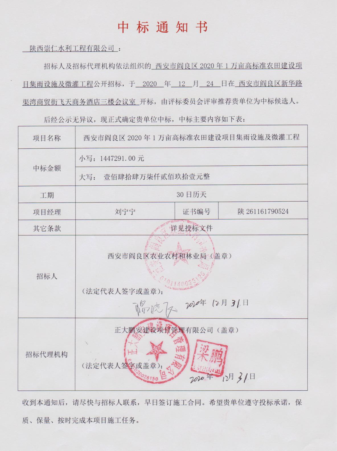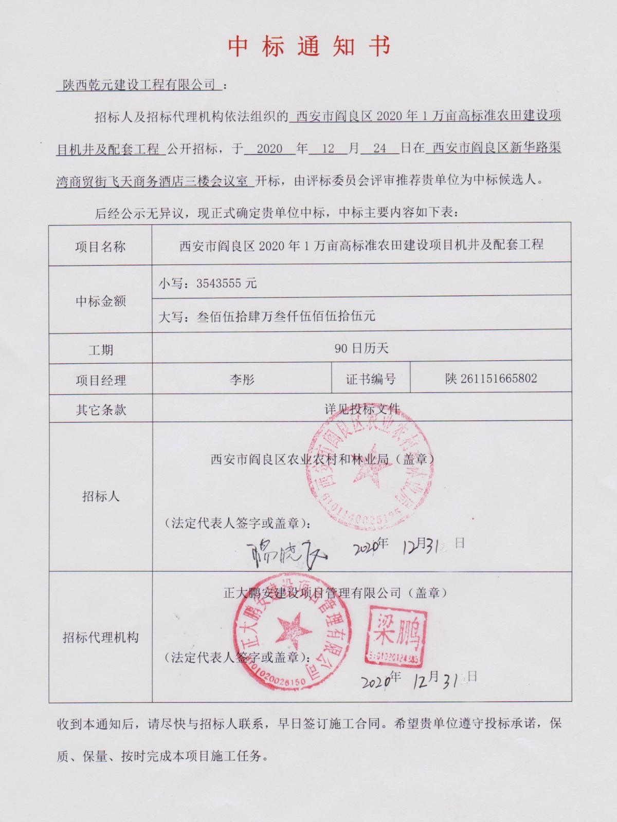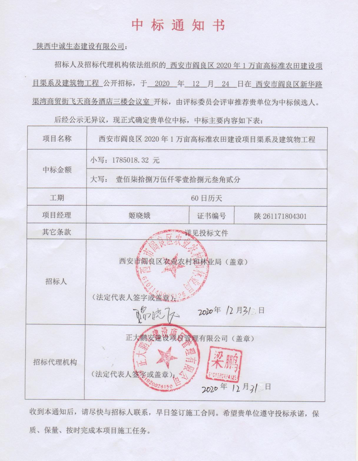 項目名稱:西安市閻良區(qū) 2020 年 1 萬畝高標準農(nóng)田建設(shè)項目
