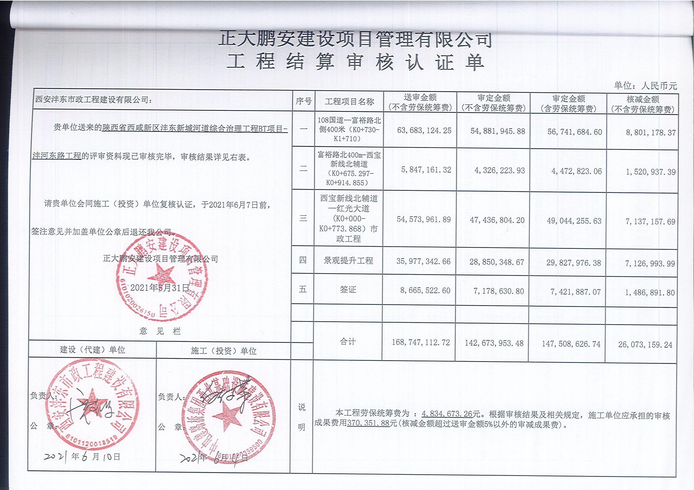本工程送審金額:1.68億元,審定金額:1.42億元,核減金額:2607.31萬元。
