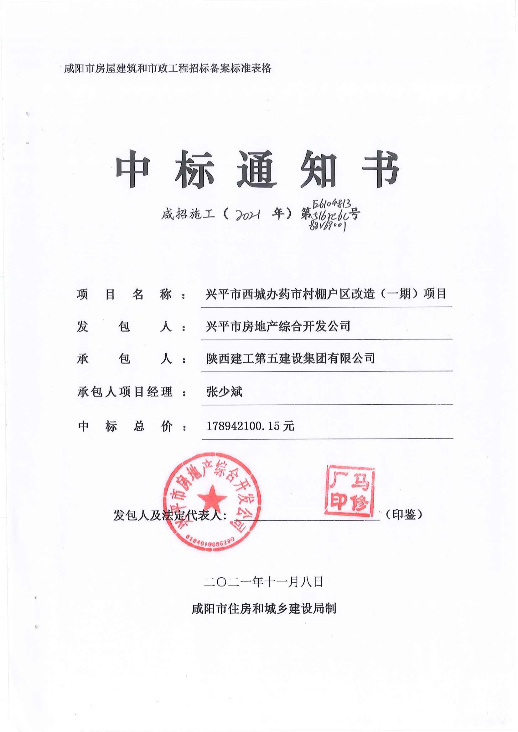 項(xiàng)目名稱:興平市西城辦藥市村棚戶區(qū)改造(一期)項(xiàng)目
