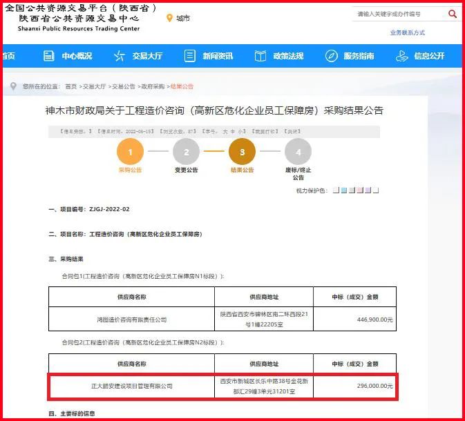 正大鵬安中標(biāo)神木市財(cái)政局關(guān)于工程造價(jià)咨詢(高新區(qū)?;髽I(yè)員工保障房N2標(biāo)段)