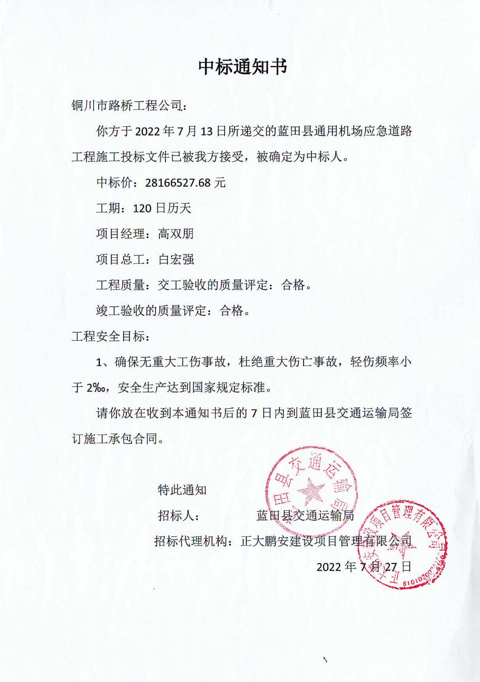 項(xiàng)目名稱:藍(lán)田通用機(jī)場(chǎng)應(yīng)急道路工程