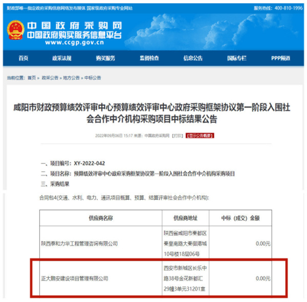 正大鵬安入圍咸陽市財政預(yù)算績效評審中心政府采購框架協(xié)議第一階段入圍社會合作中介機構(gòu)采購項目D 標(biāo)段
