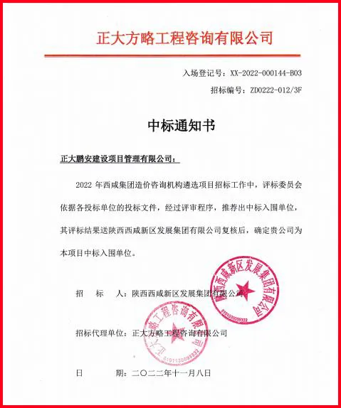 正大鵬安公司中標(biāo)2022年西咸集團(tuán)造價(jià)咨詢機(jī)構(gòu)遴選項(xiàng)目