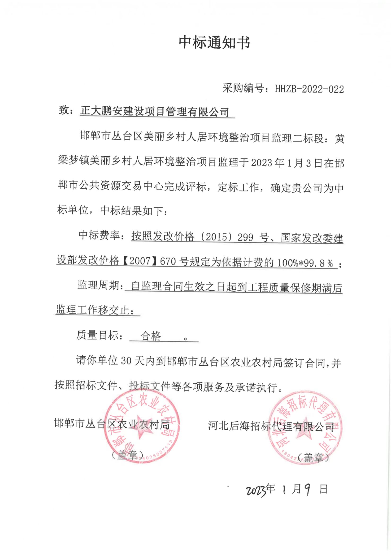 正大鵬安中標邯鄲市叢臺區(qū)美麗鄉(xiāng)村人居環(huán)境整治項目監(jiān)理二標段