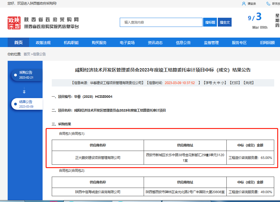 正大鵬安中標(biāo)咸陽(yáng)經(jīng)濟(jì)技術(shù)開(kāi)發(fā)區(qū)管理委員會(huì)2023年度竣工結(jié)算委托審計(jì)項(xiàng)目(一標(biāo)段)