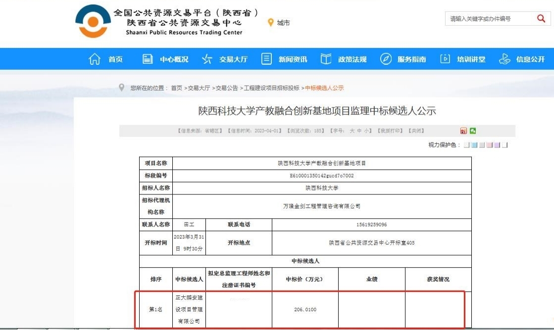 2023年4月,經(jīng)評標(biāo)委員會評定,招標(biāo)人確認(rèn),正大鵬安建設(shè)項目管理有限公司中標(biāo)陜西科技大學(xué)的“陜西科技大學(xué)產(chǎn)教融合創(chuàng)新基地項目監(jiān)理”項目。