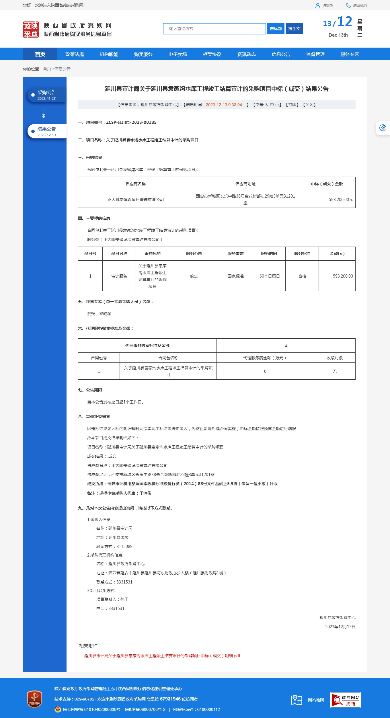 正大鵬安中標(biāo)延川縣審計(jì)局關(guān)于延川縣袁家溝水庫(kù)工程竣工結(jié)算審計(jì)的采購(gòu)項(xiàng)目