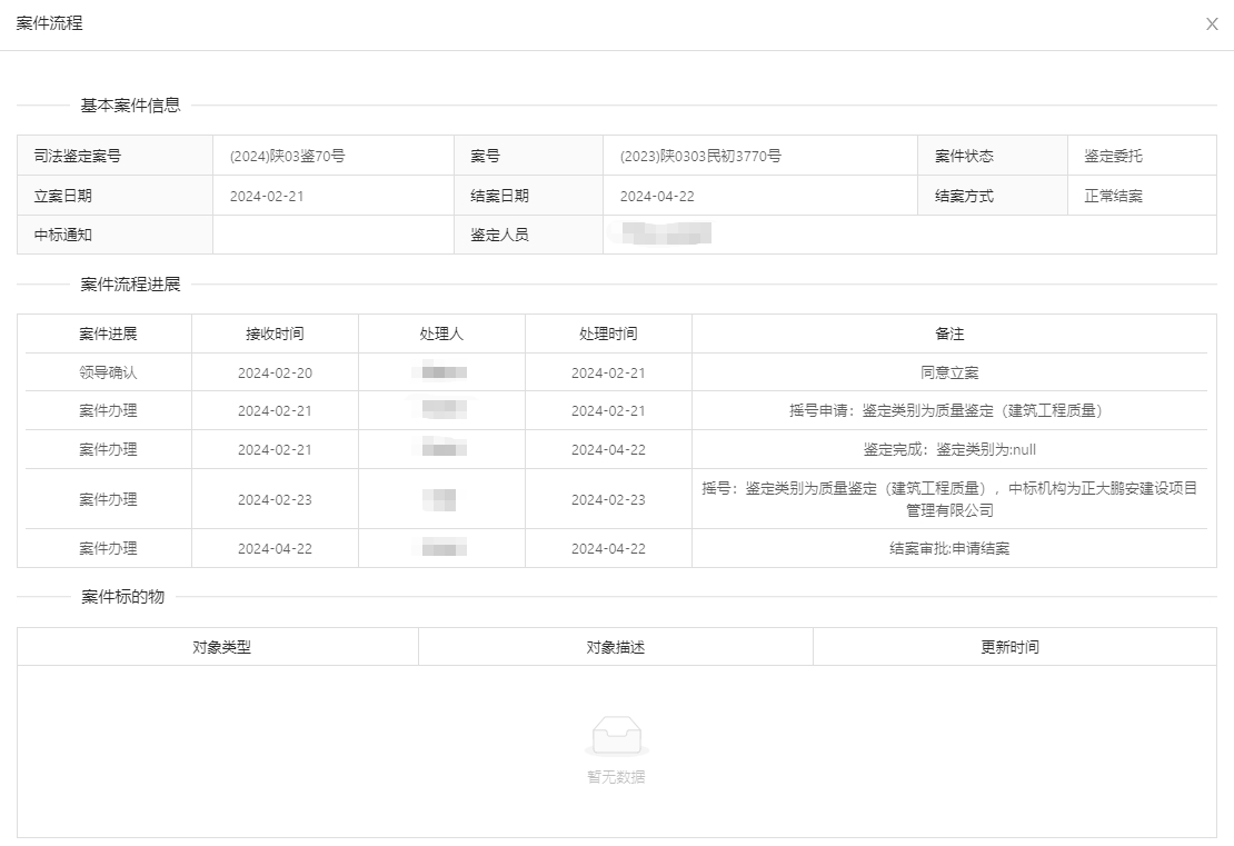 2024年2月21日,經(jīng)寶雞市中級(jí)人民法院確認(rèn),正大鵬安建設(shè)項(xiàng)目管理有限公司中標(biāo)“案涉房屋(軒苑盛世三期7號(hào)樓2單元1903號(hào))衛(wèi)生間下水道主管道堵塞造成污水反流的原因”質(zhì)量司法鑒定項(xiàng)目。