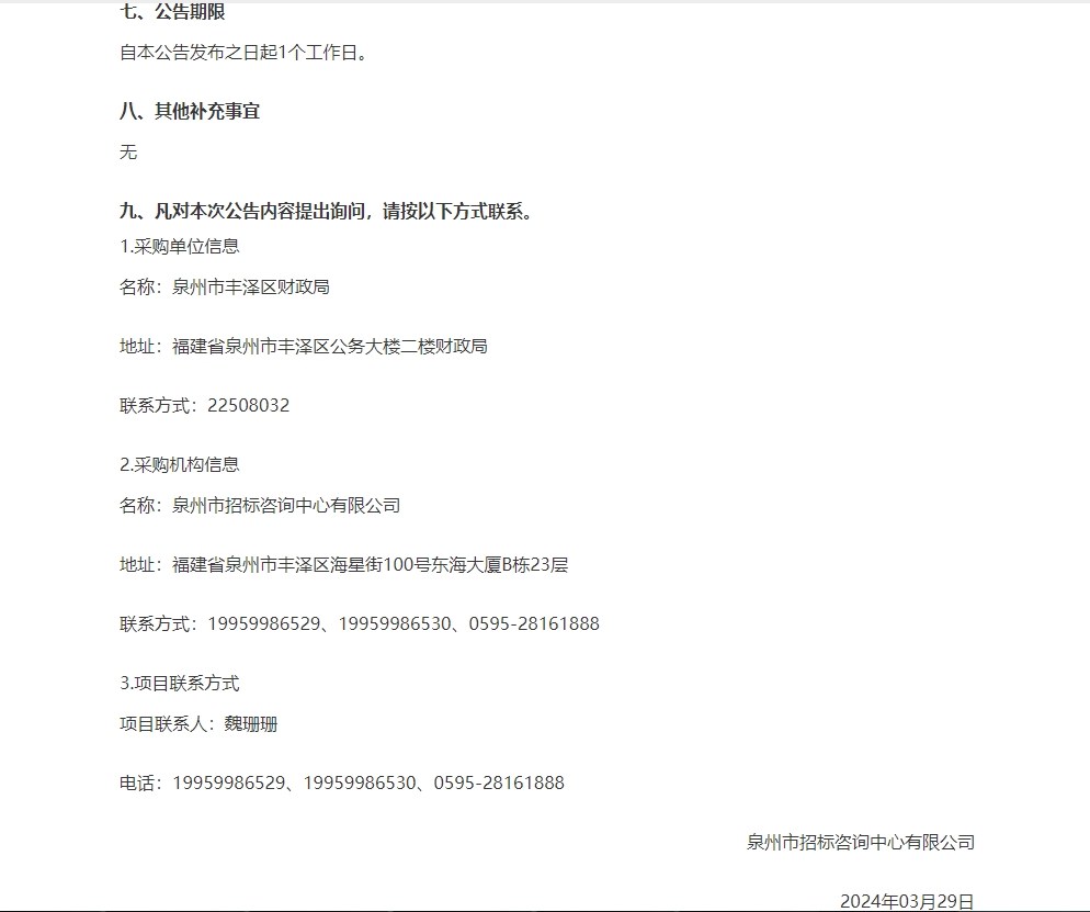 2024年3月29日,經(jīng)評標(biāo)委員會綜合評審,招標(biāo)人確認(rèn),正大鵬安建設(shè)項目管理有限公司中標(biāo)“豐澤區(qū)財政投資評審及財務(wù)決算審核助審機構(gòu)采購包6”。