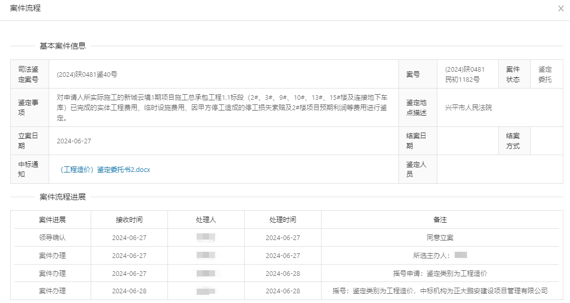 2024年6月27日,經(jīng)興平市人民法院確認(rèn),正大鵬安建設(shè)項目管理有限公司中標(biāo)“江蘇省江建集團(tuán)有限公司西安分公司與興平恒灃置業(yè)有限公司、中興建設(shè)有限公司、中興建設(shè)有限公司陜西分公司建設(shè)工程施工合同糾紛一案”造價司法鑒定項目。