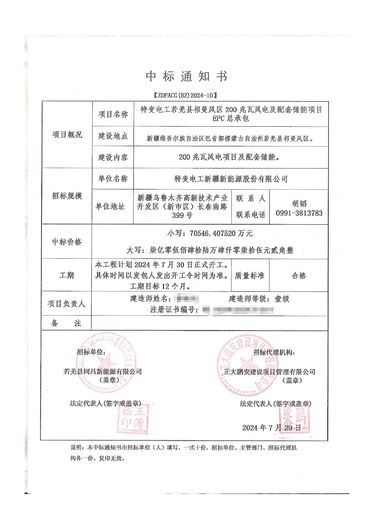 特變電工若羌縣祁曼風區(qū)200兆瓦風電及配套儲能項目EPC總承包